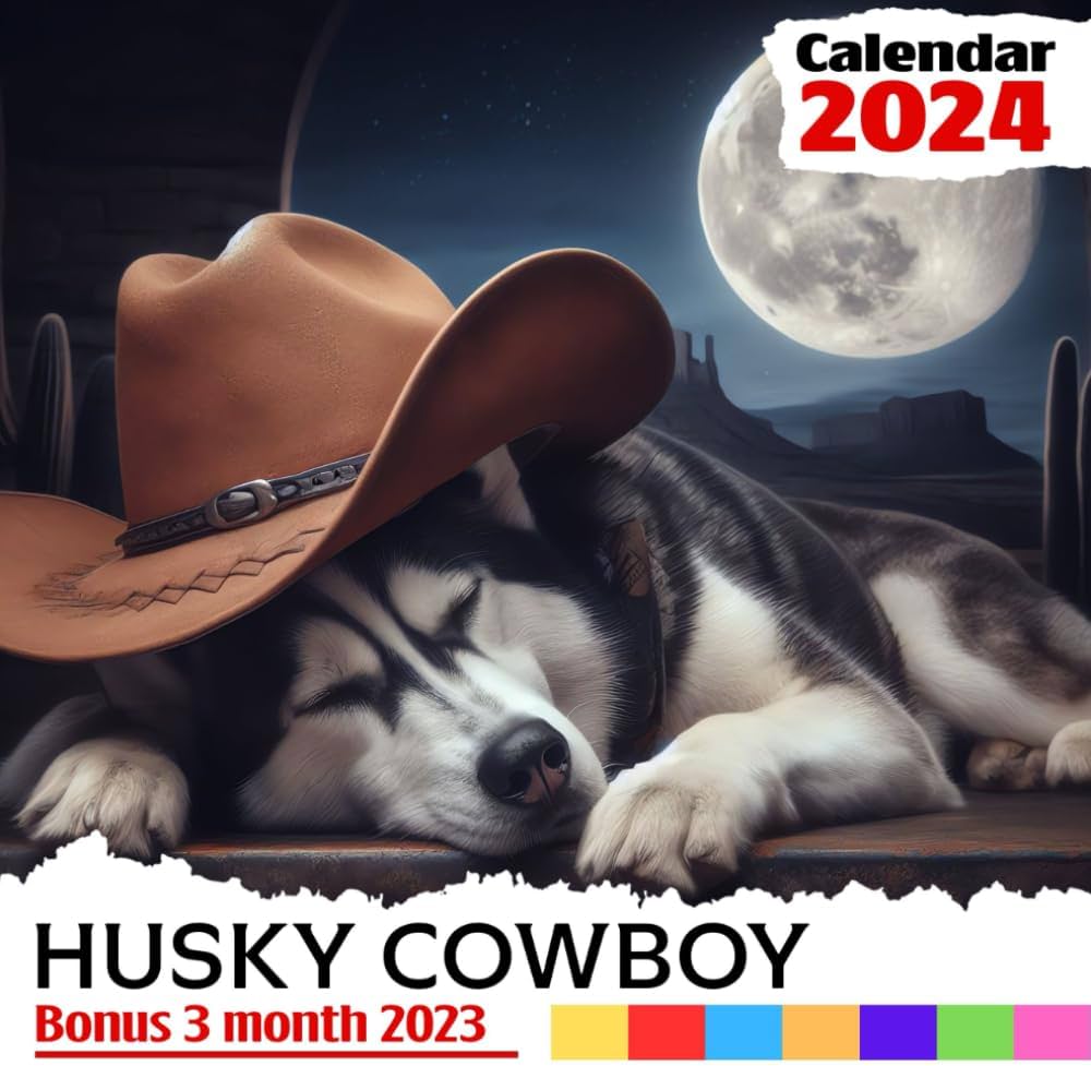 Husky Cowboy Calendar 2024: Jan 2024 to Dec 2024, Bonus 3 Months